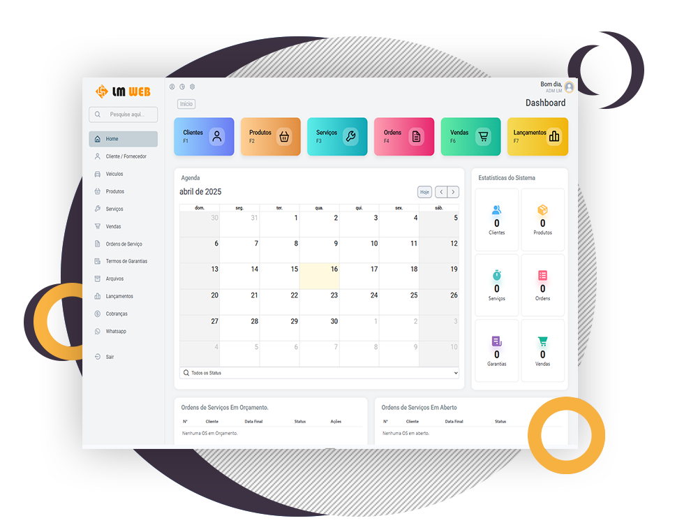 Nosso sistema é simples e direto: você cadastra os clientes, cria ordens de serviço, agenda manutenções, cadastra veiculos e vincula ao cliente, controla seu estoque e acompanha tudo em tempo real. Além disso, o envio de mensagens automáticas pelo WhatsApp garante que o cliente esteja sempre informado.